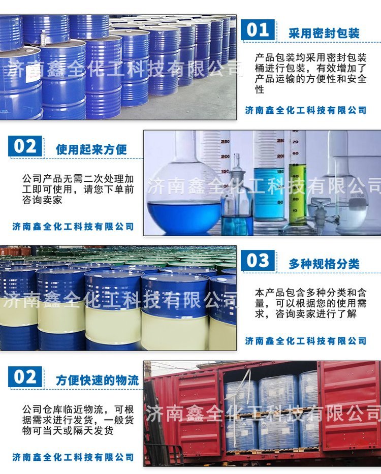 济南鑫全化工科技有限公司主营:异辛烷,辛醇,溶剂油,丙二醇甲醚,甲缩醛,石油醚,甲醇,一乙醇胺,二甲苯,乙酰乙酸乙酯,聚磷酸铵,螯合铁,正丁醇,乙二醇叔丁醚,纯苯,次氯酸钠,苯乙烯,苯甲醇,甘油,异丙醇等。